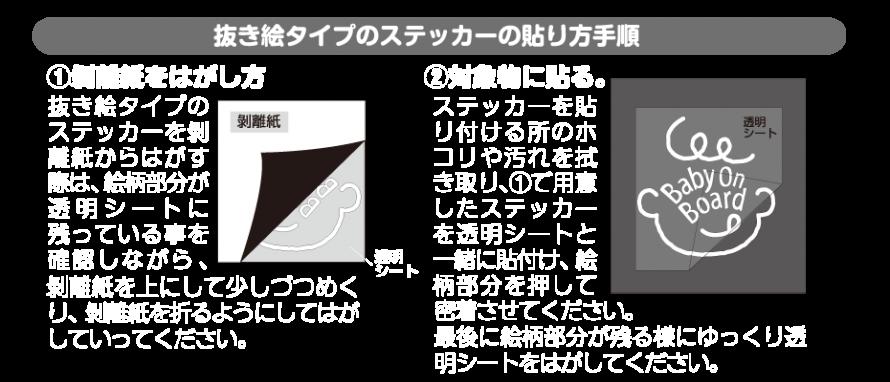 【特徴】 Baby On Boardメッセージをさりげなくアピールできるデザインで、絵柄だけが残る抜き絵ステッカータイプ。