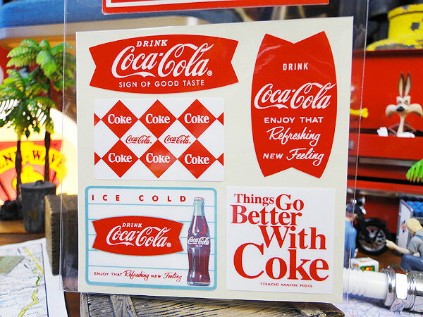 商品説明 アメリカと言えばこのマークだけにアメリカ好きには欠かせないよね! コカ・コーラの伝統のロゴマークを集めたロゴステッカーです。