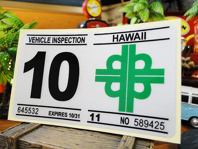 ハワイの車検バンパーステッカー レプリカ(10月) ■ アメリカ雑貨 アメリカン雑貨 自分仕様だから愛着も強くなる! アメリカ 雑貨 車 バイク スーツケース かわいい デカール オリジナル アルファベット 人気 シール カー 用品 アクセサリー リアガラス レトロ