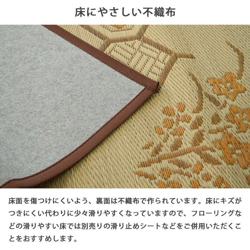爽やかな肌触りやい草の香りも合わさって、夏にうってつけの快適ラグとしてお使いいただけます。